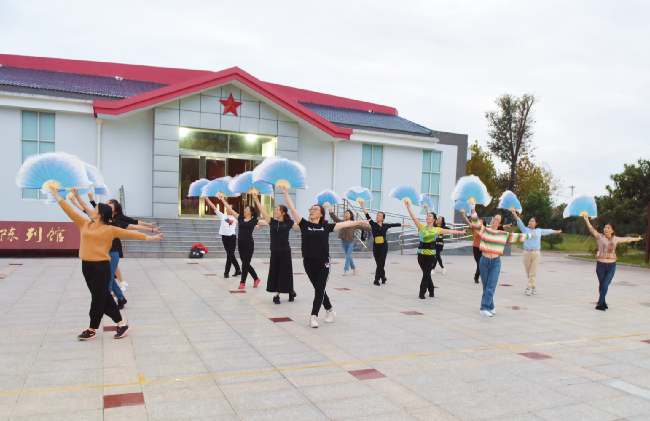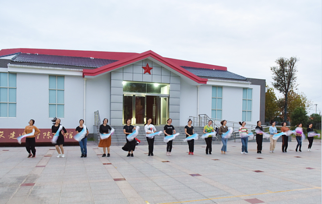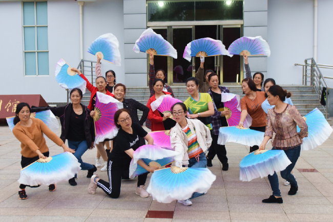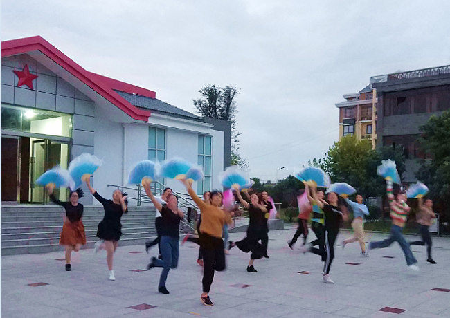 为进一步推进农场公司文艺节目的蓬勃发展,促进美丽淮海家园建设,丰富社区职工居民的文化生活,活跃文艺表演队伍,进一步营造出和谐的文明创建环境,10月9日傍晚,淮海农场有限公司工会组织的扇子舞蹈队正在陈列馆前进行舞蹈编排排练。