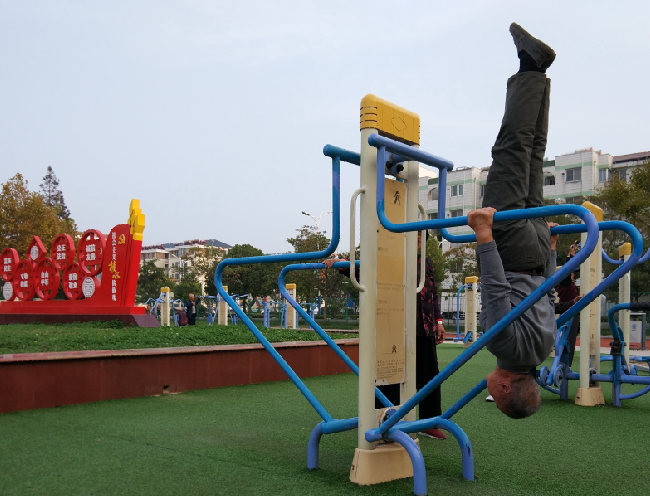 周少彪表示,他从年轻时代就非常喜欢健身,以前农场没有专门的健身场地时,家中的门框是他的吊环,阳台扶手是他拉腿肌的道具,墙壁是他练倒立的地方,当然,每天户外跑步多少年来一直坚持着。周少彪说,现在农场健身广场建起来后,他每天在双杠上练上几分钟的倒立,常常让围观的人诧异地询问他的真实年龄,而周少彪最长一次倒立坚持了10多分钟。“倒立能有效预防神经性疾病的发生,锻炼大脑的适应能力,自退休后,除了无意中跌过几次跟头外,再也没有上过医院看病问药。”周少彪说,靠墙练倒立他一直在家坚持做,而且每次做起来都感觉到很轻松。