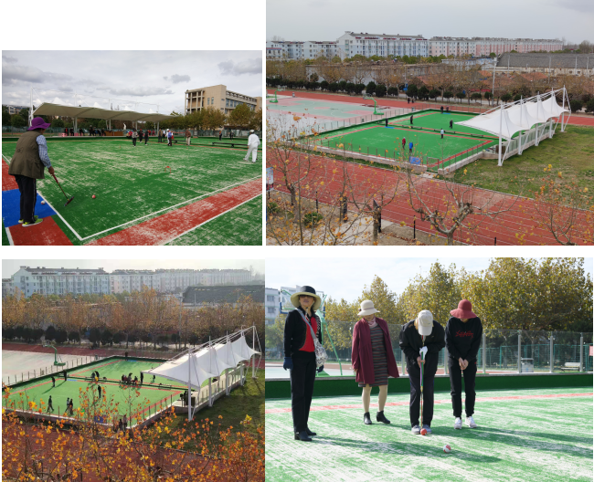 最近几天来,在淮海农场有限公司门球场上,经常可以看到农场社区的老年朋友在新建的门球场上进行落杆、瞄准、击球、进门训练时的镜头。