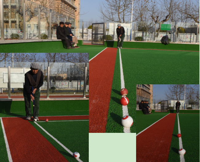 这不,今天下午当我来到广场内的门球场内时,正好有三位老人围坐在一边看林耀国打球。