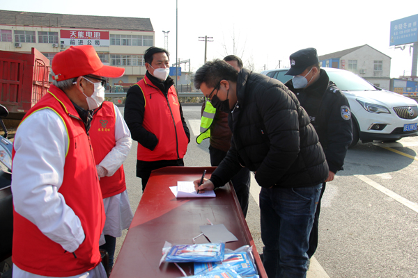 下午2时,8名医务专业人才志愿者,身穿医务工作服,头戴志愿帽,手提医药箱,在专业人才志愿服务队队旗的引导下,分两组进行卡口防控,主要任务是对进入卡口点的车辆人员进行停车询问、测量体温、下车登记,对个别司机口罩戴得不规范的进行了指导,对未戴口罩的进行宣传教育并发给医用口罩,对外地车辆及人员禁止入内。经过2个多小时的志愿服务,两处卡口点共登记173辆场内车辆,197人。经测量,正常体温197人。拒绝外地车辆入内9辆.