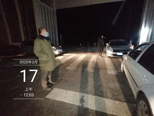 2月17日凌晨12:01分,坚守在农场南大门的侯继兵、李泽宇、张宇看到车亮迅速从车里出来进行拦截,虽是下半夜,人已处于极度困倦的状态,但他们没有“躲”在帐篷里,而是将车停在大门两侧,随时准备着拦截过往车辆。一场春雪过后,夜,特别的冷,他们用坚守好南大门筑起了三河平安健康的严密防线,为打赢这场新冠肺炎疫情阻击战默默的坚守、坚持,让我们向坚守在防控一线的他们致敬,道一声你们辛苦了,说一声谢谢你们。相信有你们、有全体三河人民的共同努力,三河的春天一定是春花烂漫。