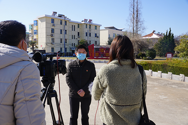 2月18日,射阳县融媒体中心记者一行到新洋农场有限公司就疫情防控工作、企业复工复产、民生保障等作专题采访。总经理潘元海陪同并接受采访。