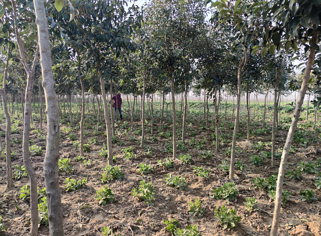 淮海农场境内有面积较大的林地面积,并且苗木长势较好,成为农场生态林地发展的一景。林木的发展,利益于农场采取的集体林、股份林和承租林三种管理模式,因股份林和承租林一般由职工管理的林下经济发展的较好外,昨天下午,我们来到农场五分场社区集体管护的林地间看到,其林下林边的油菜、蚕豆等矮杆农作物长势正旺,农业职工正在林下进行锄草等农事活动,给这个新春增添了一道忙碌的风景。