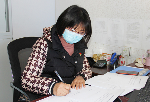一个不漏,拉网查路径排隐患。新型冠状病毒感染的肺炎疫情防控工作开展以来,作为支部一名党员全力以赴投入到抗击疫情第一线,不忘初心、牢记使命,确保辖区居民生命安全和身体健康。她每日走访排查重点人员,逐一在区域厕所宣传栏、楼道单元张贴宣传通告,力争做到杜鹃区内全覆盖无盲区。一天工作结束后,晚上还要整理当天收集到的信息并进行汇报。已经连续二十多天,从早8点到晚8点,身体确实感到有些疲惫,但一想到武汉还有那么多坚守在一线的工作人员,他们连睡觉的时间都没有,想到这些她觉得都能挺过去。面对枯燥而又高强度的工作压力,她仍努力克服,没有停下脚步。在疫情防控阻击战中再苦再难再累,也要把工作干好,无怨无悔。