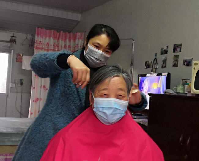 因街道上理发店全部关闭,许多春节期间想理发的老人甚感不便。淮海城西居委会志愿者沈月萍看到这种情况后,利用自己10多年以来帮自家父母理发的便利条件,无偿帮助前后幢10多名老年人义务理发,精湛的理发技艺,赢得了城西居民们的普遍赞誉!