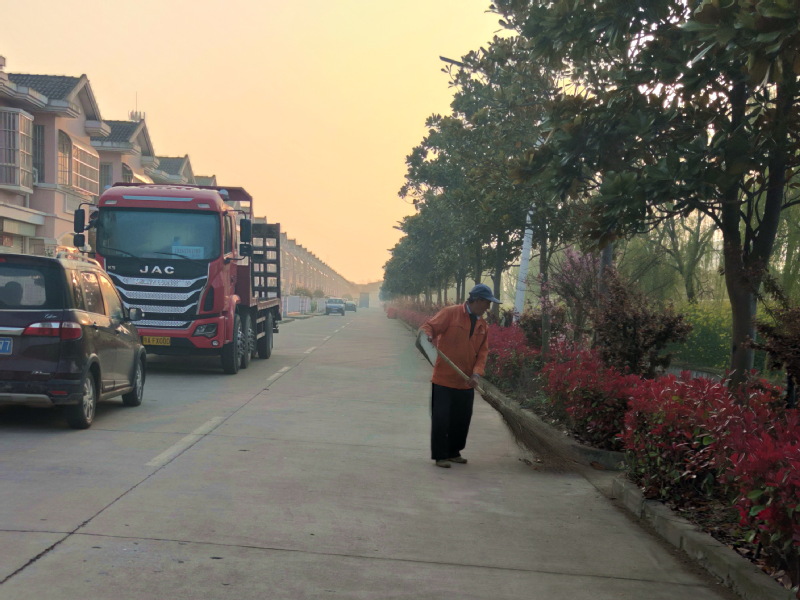 在淮海,活跃着20多名环卫职工,他们分布在农场的各个区域,担负着每个责任区内的卫生保洁工作。由于农场的环卫职工心中有梦想,肩上的担当,所以虽然他们各管各区域,但经过农场绿化环卫所的检查和定期不定期的考核,每一个环卫员工的工作都做得较好,不但得到了辖区职工居民的称赞,时常保持环境清洁的状态,同时也为美丽淮海建设,营造出了干净的环境氛围。图为农场淮海路、神禾路和文化广场上的环卫职工在保洁时的镜头。