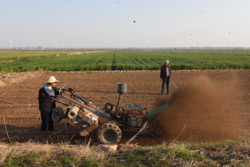 淮海农场作为国有麦稻农业生产基地,拥有较为完备的大机械生产能力,农田机械化程度达到了98%以上。而在淮海农场周边农村的一些农机户,看到了农场机插秧田制作时,需要小型机械开沟的需求信息机遇,通过投资小型农机进行拾遗补缺服务,在保证农场生产需求的同时,也为自身获取了不菲的服务收入。图为一农机户在机插秧畦间进行开沟时的镜头。