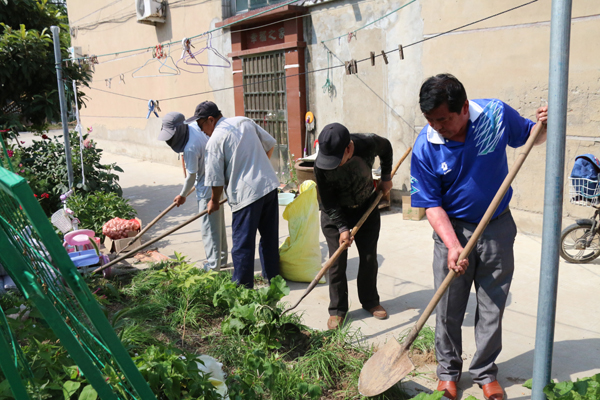 在此基础上,各居委会强化“菜园变花园”工程管护力度,经常组织居民组长、志愿者进行杂草清除、监管花池内绿化植树的更新换代,尤其重视纬三路、纬四路、纬五路等几个主要道路沿路花池的管护,严禁破坏现有绿化带,发现种菜、搭建菜架子等情况,立即整治清除,并协同林业公司重新补上花苗。