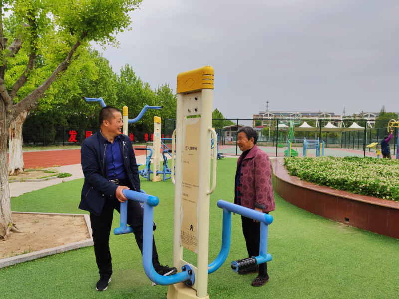 正在塑胶跑道上走路的臧成龙,看到了沈大妈渴求的目光,便也来到她的身旁,关心地询问有何事,说着边在健身器材上磨着腿,边与老人了解着一些情况。知道事情的来龙去脉后,臧成龙并将他多年来在社区工作中的掌握的经验和技巧,与老人进行着心与心之间的沟通,先解决老人思想上的认识问题,然后对自己能处理的事及时告知,从而让老人脸上的愁云散去,开开心心地又在广场上健起了身来。我们从老人的脸上,看得出沈大妈对臧成龙所做的工作是非常满意。