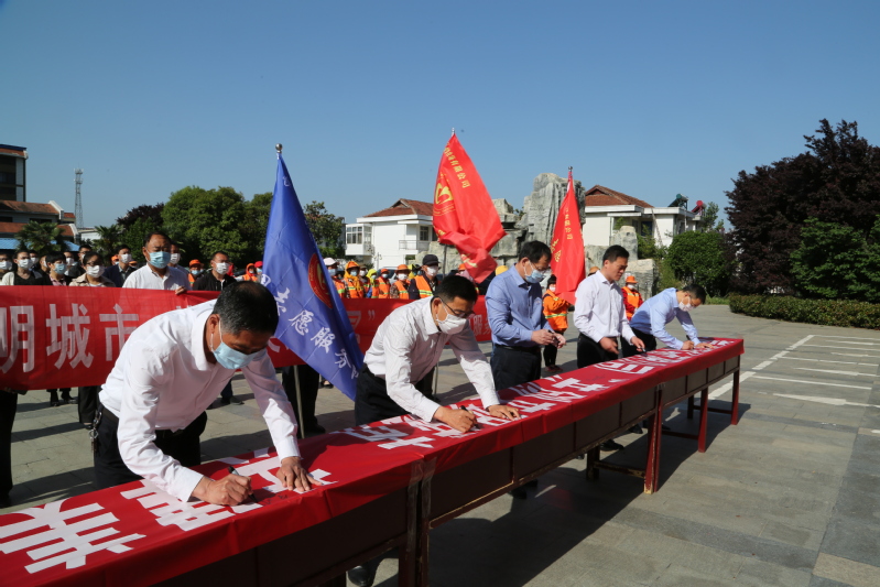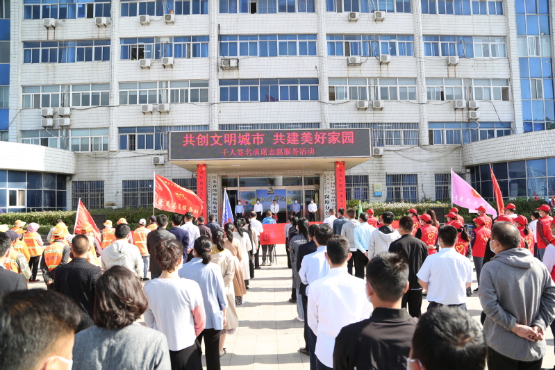 致辞结束后,参加活动人员依次在宣传横幅上留下了自己的名字,做出了保护环境的承诺。随后,参加活动人员共同走上街头,开展了宣传文明创建的志愿活动,共分发《“共创文明城市 共建美好家园”——致全场广大居民一封信》一千余份。