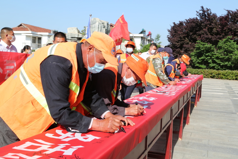 党委书记王信学在致辞中指出,开展环境污染整治活动是城镇绿色发展的需要,是群众对美好生活的强烈期盼,更是我们的重大责任和使命。今天召集大家在这里举办“共创文明城市 共建美好家园”个人签名承诺志愿服务活动,我们必须以坚定的决心、高度的担当、过硬的措施向环境污染“宣战”,为持续改善环境质量,推进生态文明建设、助推文明城市高质创成、打造生态宜居岗埠,做出积极的贡献。