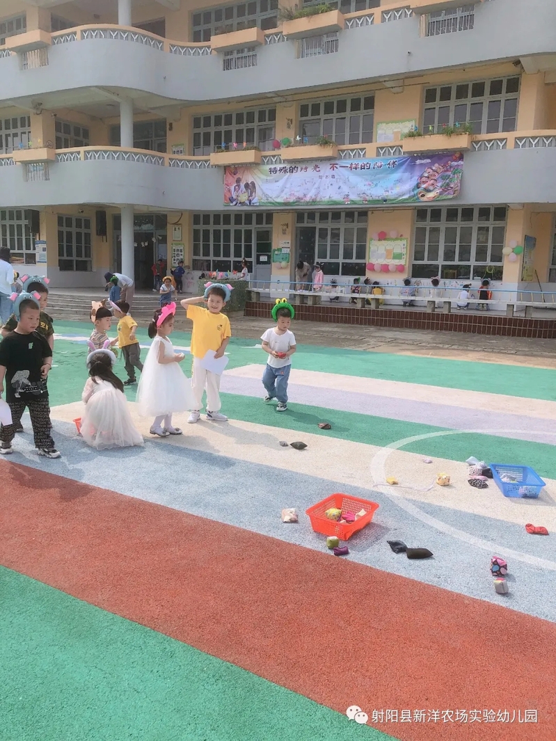 为了让孩子们感受到节日的欢乐,来园后的第一步就组织孩子们用着自己喜欢的方式在签名纸上签名。接着老师们针对三个年龄段的孩子们分时段开展了不同的游戏活动:有“摸摸乐”、“萝卜蹲”、“背靠背”、“乌龟爬”、“晚报纸”、“退得快”、“好玩的保龄球”、“投沙包”等丰富多彩的户外活动和才艺表演。