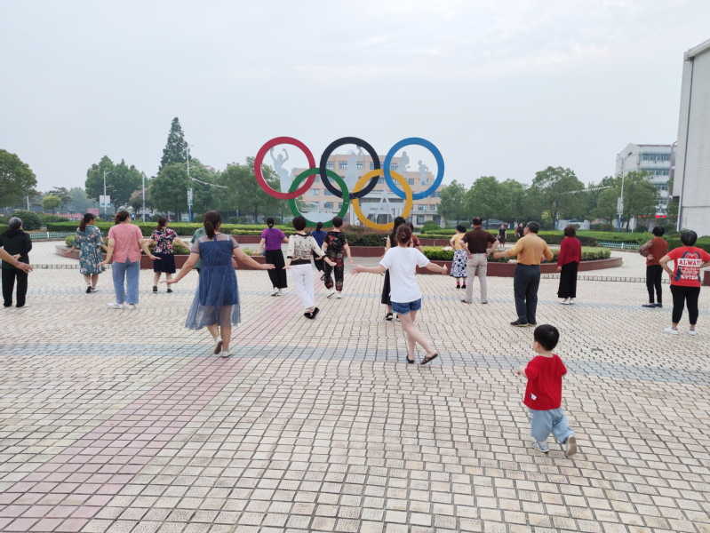 6月20日傍晚,虽然已经是过了下午6点半钟,但在淮海文化广场上,天空还是十分地明亮,这时的文化广场上那些老爹老妈们,却像是年轻人一般,挥舞着轻盈的脚步,旁若无人地跳着欢快的广场舞。虽然有时他们的动作不甚整齐,不称曼妙,却透着一种健康和谐,老年职工居民嗨起来的健身舞姿,丝毫不比年轻的同志差,甚至还有几分韵味。