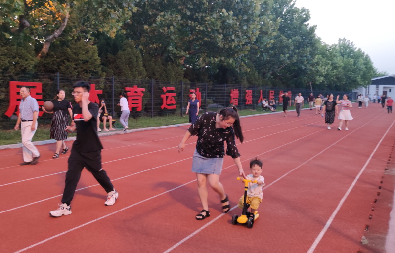 在职工休闲体育运动广场内,人气最高的是塑胶跑道,人们在跑道上不跑上个七圈八圈根本不上瘾。一些老职工见面时说的话就是:“跑几圈了?”“喔,才跑三圈,还要跑五圈,走,一块儿跑。”可见人们对散步运动的爱好。其次就是健身器材,近30座不同功能的健身器材,让不同需求的人都能找到适合自己的运动方式,特别是身体健康有问题的老年居民,他们就会在健身器材上作生意人康复训练。第二就要数篮球场了,就是是青年人最喜爱的运动方式,在奔跑中达到训练身体、提升球艺的目的。那个舞蹈池就是爱好跳舞的那些中老年人的最爱,每天不到广场上来跳上一段舞,身体还真像缺少了什么似的。据不完全统计,目前每天来到广场上健身的职工群众就有二三千人次,在高峰时段整个封闭式的广场内就有六七百人同时健身运动或休闲,他们就是以走出户外,参与各种平台的健身运动,来享受着“我运动、我健康、我快乐”的活动主题。