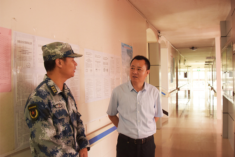 体检结束后,袁建斌与陆晓东就今年征兵的形式进行了交流。袁建斌表示,临海农场有着浓厚军垦文化,从近几年的报名参军青年人数来看,农垦青年对于参军的热情还是很强烈的,临海每年也送出了优秀的青年到部队,今后农场还将一如既往的支持、做好地方征兵工作,确保将高素质、高学历的优质青年送入军营。随后,陆晓东部长就今年全县的征兵形式和要求进行的通报,在充分肯定临海初检工作的同时,提出了三点建议:一是要重点抓好大学生毕业生的兵员征集,突出农场青年学历层次高的优势;二是要重点做好应征入伍新政策的宣传,激发应征青年投身火热军营的热情;三是要重点把好体检、政审关,确保高质量完成2020年的征兵任务。