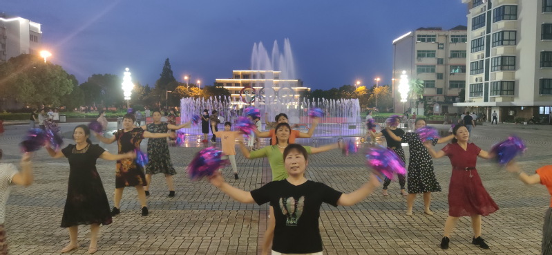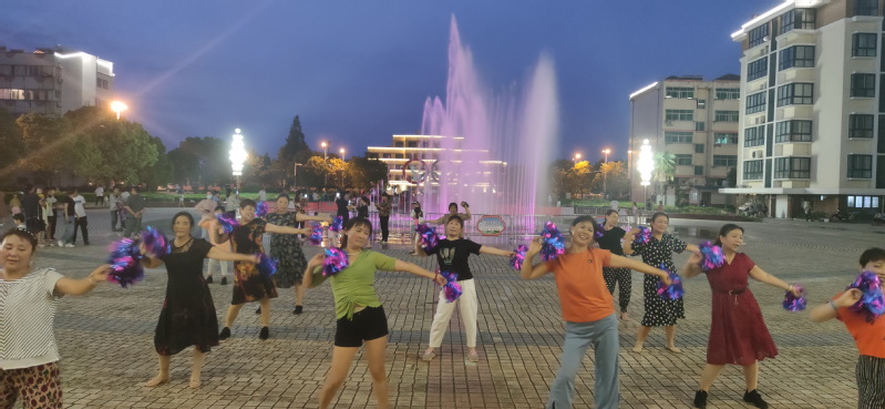 每天傍晚在淮海农场文化广场上的音乐喷泉旁,活跃着两支广场舞表演队伍,其中一支由12名退休女士组成的广场舞蹈队,他们在音乐的伴奏下,手持花簇 ,翩翩起舞。只见她们脸上洋溢着幸福的笑容,她们用舞姿描绘锦绣时代、畅想美好未来,她们也让幸福的感觉在现场蔓延开来。也让农场的大妈们在舞出自信,跳出风采中,展示好农场社区新一代职工居民的新形象。