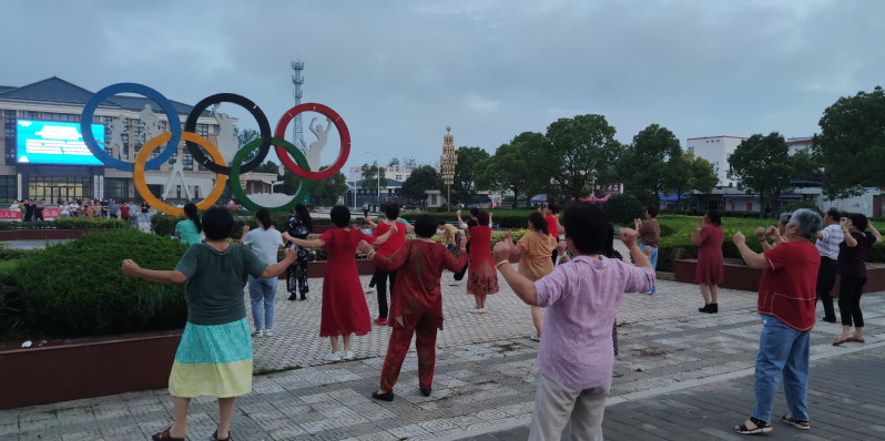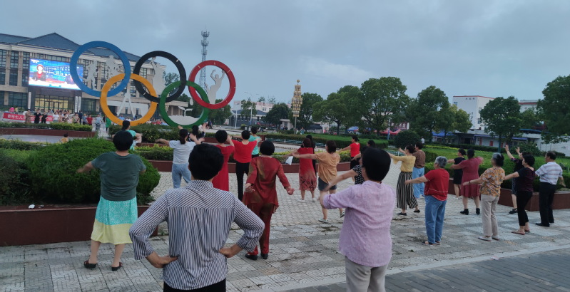 傍晚,农场广场上真的是热闹非凡。我们注意到,在农场文化广场那近6000平方米的广场上,竟然分布着三支跳舞的场地,大家各自播放着节拍音乐,跳着不见风格的舞蹈,其火热的场面经常吸引许多外来人员参加,也让各自的团队在大家的参与中慢慢扩充变大。