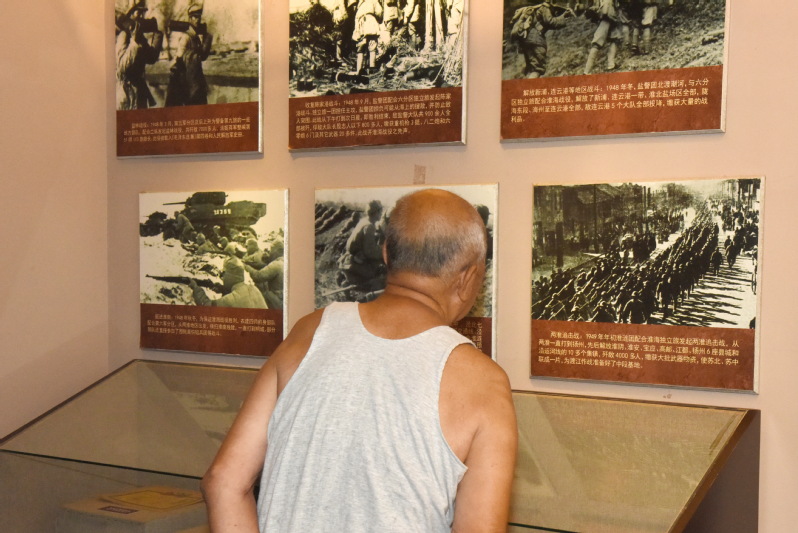 8月7日下午,乘农建四师陈列馆有客人来参观,居住在陈列馆约百米远的老军垦虞明生又一次走进农建四师陈列馆中,通过观物抚今,借此来怀念战友,回忆建场初期那些峥嵘而又艰苦的难忘岁月。