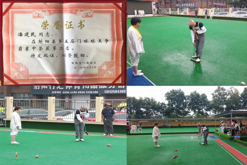 在第五届门球球王争霸赛中,潘建民经过一天20场次的紧张比拼,一路过关斩将,惜败球王周克玉,荣获了第二名的好成绩,为农场公司争得了先进,赢得了荣誉。