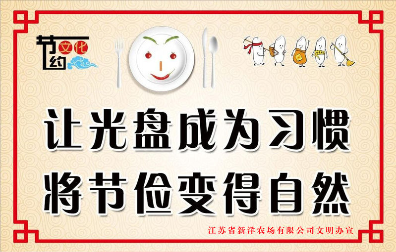 通过开展光盘行动,在全社会倡导文明用餐理念,培育健康文明的餐桌文化,净化农场文明环境,形成文明用餐、节俭惜福的良好社会风气。