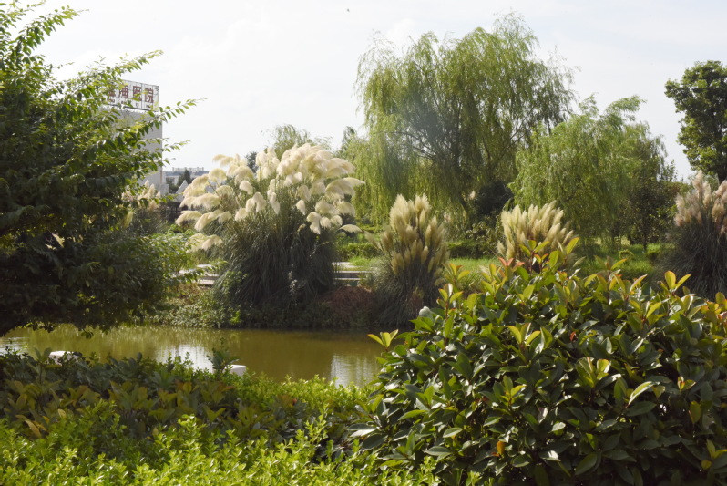 在孩童时节,我们在上学途中,常在蒲苇草间穿梭、躲藏,特别是在开花季节,我们常攥着那毛绒绒花序,抚摸玩耍。那个年代蒲苇草在林间地头和坡河坎上生长了许多,其高大的植株,绽放的芦花,在野外看来甚是美丽。长长的蒲苇草常被妈妈割回家,晒干后用作包裹粽子用的绳索,结实得很。如今,农场把这一草本植物通过引进种植在职工群众游乐休闲的淮海公园内,就是把她那轻盈飞扬,飘逸洒脱的姿态植入公园,让人在丰富遐想和游玩的同时,打造出新的景致,如今看来,蒲苇草果真不凡,在开放季节更是别有一番韵味。