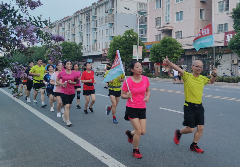 每周一周三傍晚6点30分,在淮海农场有限公司淮海跑团的20名左右的队员们,手举着运动旗帜,开始了每周两次的例行训练运动,这是为了能够让广大跑友更好地感受成马的热烈氛围,而在农场公司范围内特意组织的赛前训练活动。