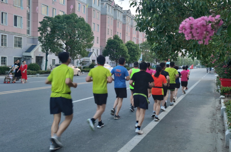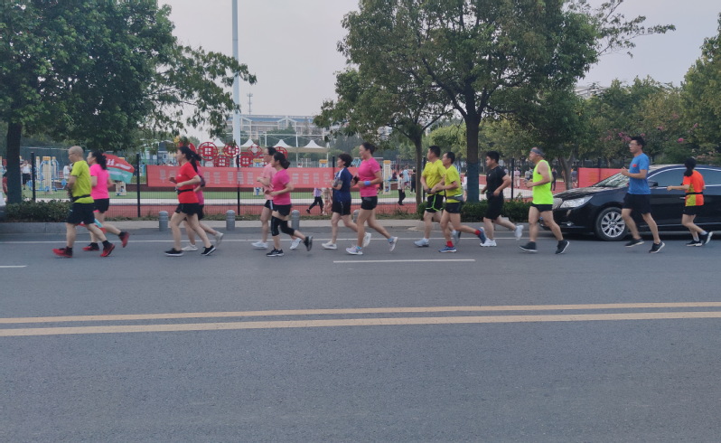 2020年盐城马拉松将在10月25日开赛,淮海农场公司有众多的职工居民参与盐城马拉松这一盛事的名额,为此,农场淮海跑团组织了跑友在学习工作之余,拿出两天傍晚的时间进行例行赛跑,其目的是让成功报名成马的选手在赛前既可以通过跑步提前进入比赛状态,寻找比赛的感觉和节奏,又可以在一个体力充分消耗的傍晚,增强自身的运动积累的身体素质。我们注意到,虽然每次参加赛前马拉松奔跑的跑友中,人数有增有减,但参与的人都是以饱满的精神状态,跑完七八公里的路程。在奔跑中,有两对夫妻选手,有同单位的职工,大家在激烈的奔跑中,相互鼓励,相互支持,赛前马拉松已经成为淮海健康体育文化的一道风景线,时时流动在淮海的广场和路道中。