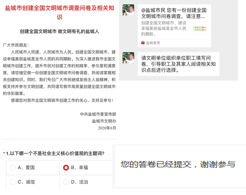 为深入推进盐城市全国文明城市创建工作,提升群众对创建工作的知晓率、参与度和满意度,连日来,新洋农场有限公司文明办按照市文明办要求,积极组织开展创建全国文明城市问卷调查工作,全面向辖区职工群众宣传普及文明城市创建知识。
