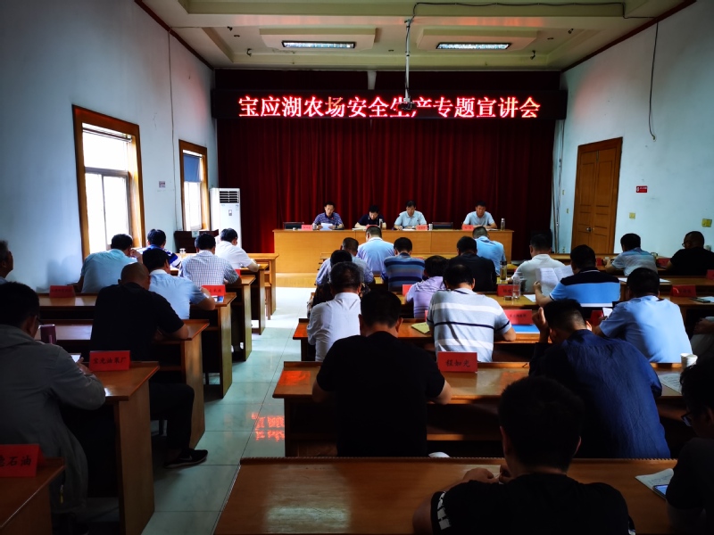 8月27日,宝应湖农场公司召开安全生产专题宣讲会,农场公司党委书记李乾清作《强化责任担当,提升安全水平》专题宣讲,董事长赵建坤主持并讲话,副经理姚海杰领学了《习近平关于安全生产重要论述摘编》。