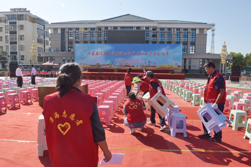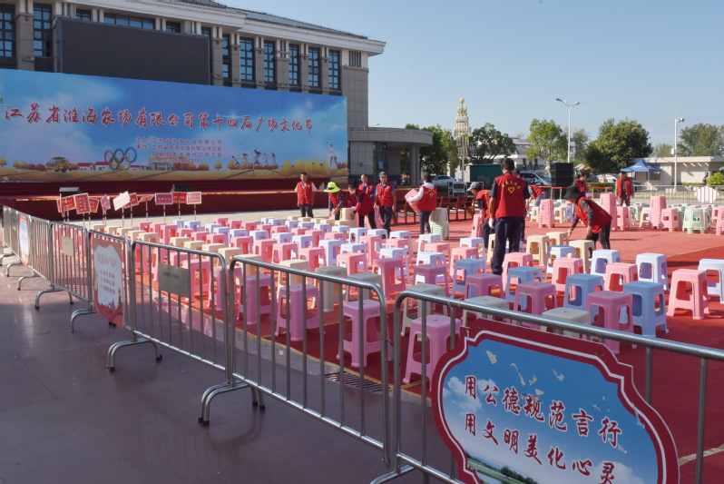 9月28日下午是江苏省淮海农场有限公司举行第十四届广场文化节的时间,为了保障农场文化节的成功举办,确保把这次活动组织好、安排好,淮海农场公司近20名青年志愿者们,以志愿服务的精神,积极为农场广场文化节的举办开展场地布置、桌椅摆放、展板布置和秩序维护等志愿服务工作,为农场每年一度的文化盛事奠定了基础。