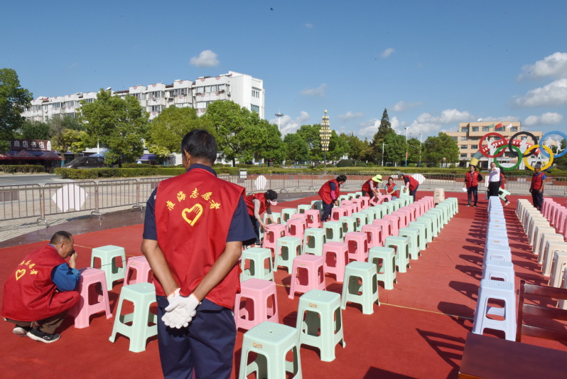 “我们要把凳子摆放得整整齐齐的,这样才能体现好我们的工作态度和形象。”国庆前夕,在今年农场组织第十四届广场文化节前,农场社区环卫绿化所的志愿者们,用绳子把场地上的300多张塑料方登摆放得非常方整,看得出他们一丝不苟的工作态度。