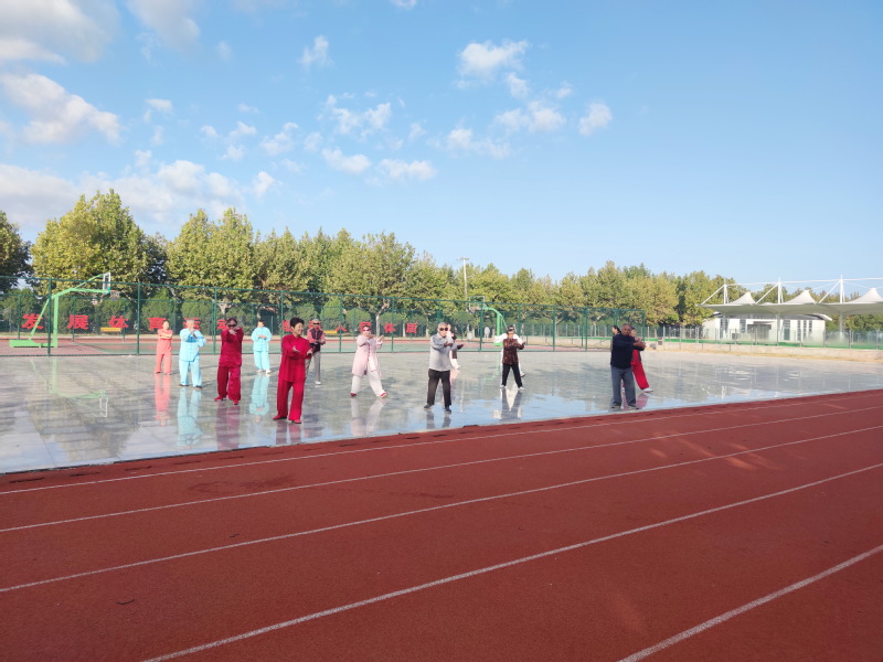 10月9日上午,是国庆中秋双节过后上班第一天,天气晴朗,阳光明媚。虽然太阳已经升起来了,但我们在淮海职工休闲体育运动广场上看到,还有一群打太极的老年人正在广场上旁若无人地运动着,享受着太极运动的乐趣;有几位老人相伴在塑胶场地上散步,品味着健身生活的美好;还有几位年轻些的老人,在门球场内挥杠运球,提升打球的技艺。