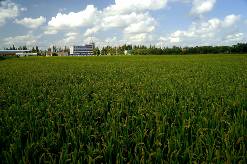 站在高处眺望:新洋分公司数万亩水稻已微微泛黄,一阵秋风吹来,荡起层层稻浪,让人心旷神怡。