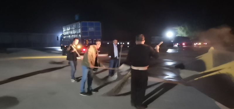 你扫、我铲、他推,10月14日晚上8点,宝应湖分公司共和生产区的槽坊场头依然机声隆隆、灯光闪烁,七八位员工分工合作忙碌在夜色中,勾勒出一幅美丽的秋收剪影。