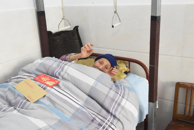 原来,丁吉女在90岁那年,上厕所时不慎将右腿跌断了。到了98岁那年,一次早上下床时,从床上栽了下来,又造成了右大腿骨骨折。就医时,医生说老人已经不能再动手术了。此后丁吉女再也没有起来过,且大小便不能自理。