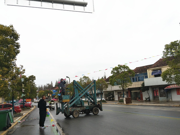 11月22日是礼拜天,温度骤降,还飘着小雨,但新洋农场社区管理委员会的工作人员们不惧寒风,走上街头,用一天时间更换纬四路主干道上的过街彩旗,并组织人员对沿街卫生进行清扫,对河道进行整治,使得场域面貌焕然一新。