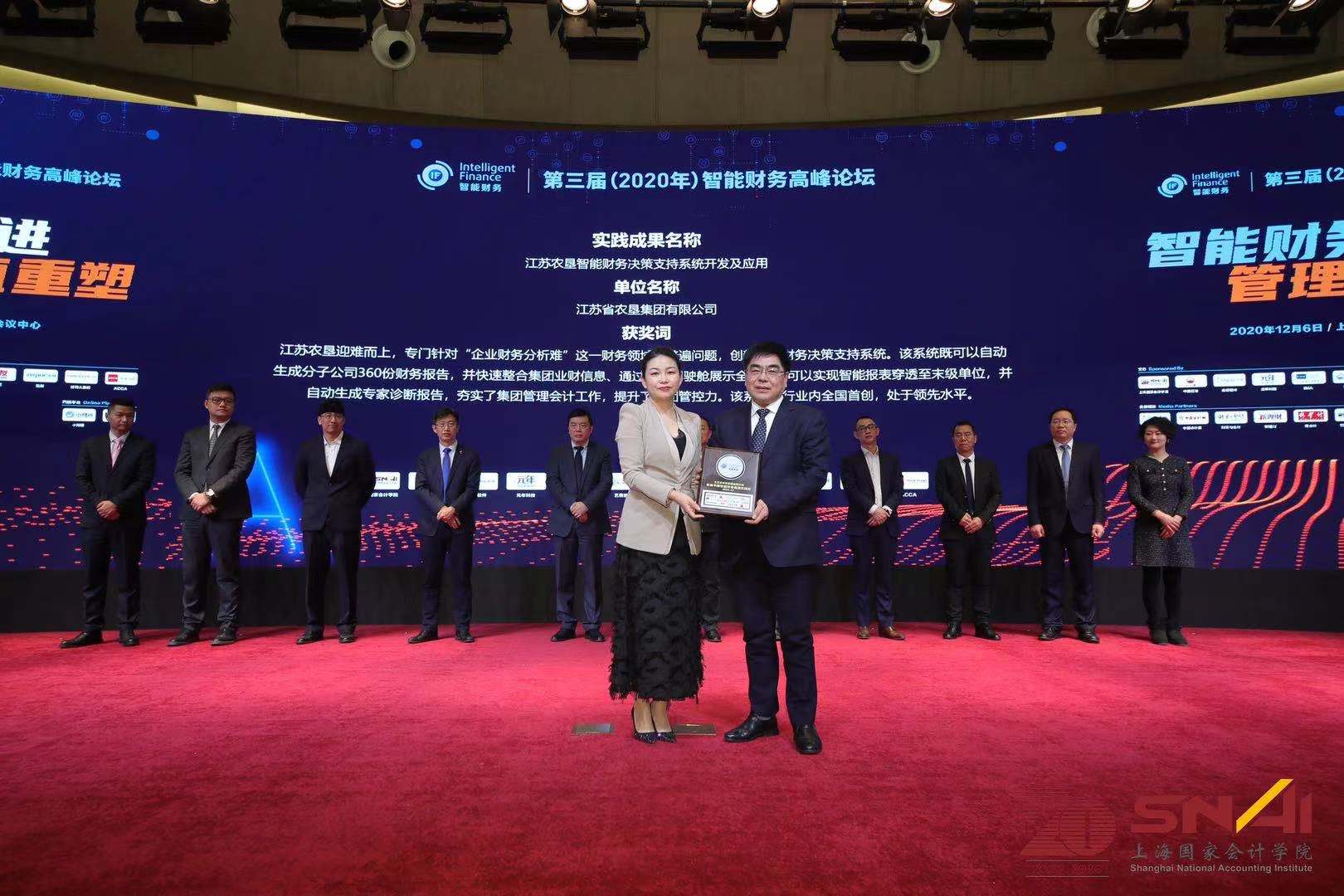 峰会期间颁发了首届“中国智能财务最佳实践”大奖,江苏农垦与中国石油、国网浙江电力、中国铁搭、中科大一附院、雅居乐、云南烟草、南粤交通、蒙牛和中兴新云等十家知名企业获此奖项。集团公司总经济师杨炳生应邀参加峰会并领奖。该奖项由财政部直属的上海国家会计学院牵头,与英国特许会计师公会(ACCA)、美国管理会计师协会(IMA)和国内外智能财务领域顶尖研发机构共同主办,中国会计视野,中国会计报,财务与会计,新理财,新会计,管理会计研究,财会通讯和会计之友等国内权威学刊提供媒体支持,37家国内知名企业智能财务应用项目共同参与角逐,评选分为资格审核、线下初评、网络投票和竞奖答辩等四个环节,代表中国智能财务领域最高水平。