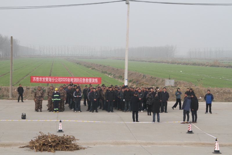 12月11日下午2点30分,在中德示范园大队场头(无仓库等安全区域)现场虚拟着火现场。黄海分公司启动应急预案,组织员工开展灭火自救,将火扑灭。分公司经营层、机关部门、中心负责人及安全员、生产区负责人、农机监理、大队保管员及农场民兵,合计150人。