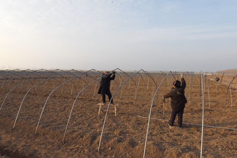 1月20日,笔者在淮海农场五分场社区3000多亩西瓜大棚种植基地里看到,众多的农场职工居民和周边农村的群众,散落在西瓜种植基地内,正在热火朝天地进行西瓜大棚种植的棚架搭建、土地平整、机械操作、铺膜盖棚等各种劳务用工工作,这成为冬日里一道繁忙的风景线。