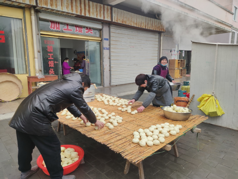 已经是60岁的贾长梅是淮海农场淮海路15号楼的居民,每年她就利用春节到来的时节,利用夫妇两用大笼蒸馒头过年的手艺,在为广大职工居民提供服务的同时,也通过自己的双手和雇请部分服务人员,为大家提供逢年过节蒸馒头的便利,此举受到了众乡邻的欢迎。