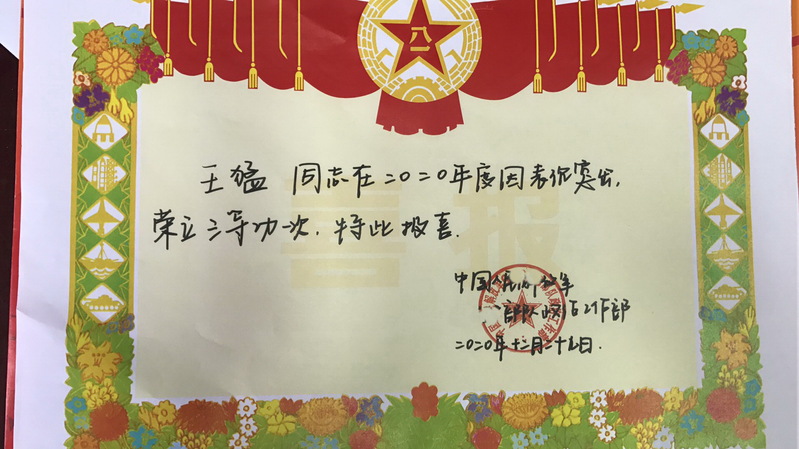 俗话说,一人立功,全家光荣,无论是农场社区的领导还是看到喜报的职工群众,都夸赞王猛是个好样的,他到部队时间不长,就获得了一个三等功的荣誉,不仅是给他的家人长脸了,更是让农场人武部和农场社区的广大职工居民带来的满满的荣誉感。