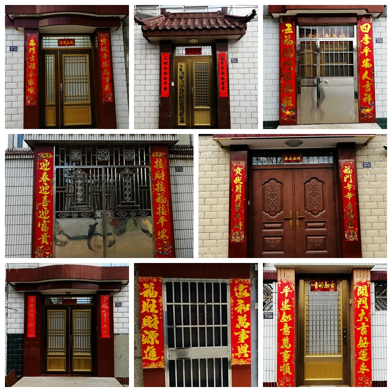 春联,又叫“春贴”、“门对”等,春节贴春联是中华民族的年俗,每年春节,家家户户都要在门上或门两边贴上大红的春联,更增添了喜庆的节日气氛。春联以对仗工整、简洁精巧的文字描绘美好形象,抒发美好愿望,是汉族特有的文学形式。红色的春联贴在大门上,房子顿时生辉。正如诗云:“喜气临门红色妍,家家户户贴春联;旧年辞别迎新岁,时序车轮总向前。”