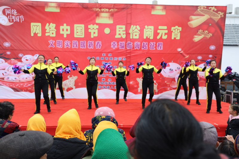 2月26日下午,射阳县临海镇金海村新型社区健身广场上举办“网络中国节,民俗闹元宵”活动,淮海农场社区情之韵广场舞队的9名队员,也以《火火的中国火火的时代》参加了由盐城市委网信办主办,射阳县委宣传部、射阳县委网信办、射阳县文广旅局协办,射阳县临海镇党委、政府承办的活动。活动吸引了该镇众多的群众现场观看,同时活动的主办方在开通网上直播,当天观看人数达4.14万人。