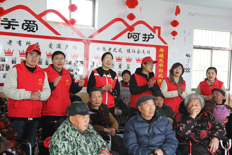 慰问期间,志愿者们以朗诵、独唱等形式,向老人们表达祝愿。声情并茂的朗诵和激情满怀的演唱,点燃了养老院的欢乐氛围。在演出过程中老人们还时不时的跟着志愿者的歌曲打着节拍,一曲合唱《爱的奉献》“只要人人都献出一点爱,世界将变成美好的人间……”老人们拍手称赞,脸上绽开了笑容。临别时,志愿者和老人们合影留念,祝老人们身体健康、幸福快乐。老人对志愿者到来表示高兴,感谢志愿者对他们的关心。