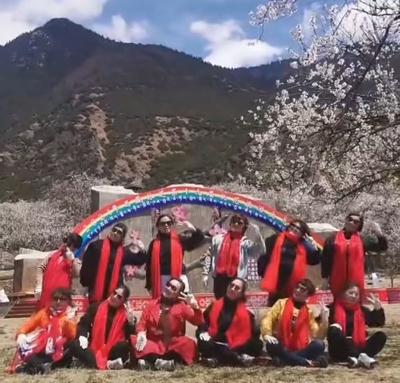 4月6日,我们透过抖音平台看到,从淮海农场到西藏去旅游的20多名游客,在各个风景区前或拍摄照片、抖音,展示着风景风情的完美结合,或带着亲自制作的横幅,让文明的风景与自然的人文风光圆满融合,让文明旅游陪伴整个旅程。