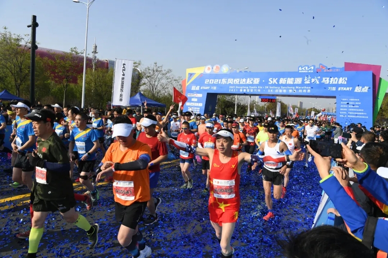 4月18日上午7点30分,2021东风悦达起亚·SK新能源盐城马拉松赛在盐南体育中心鸣枪开跑。淮海农场有限公司20名选手与来自全国各地的1万5千多名跑友齐聚盐城,在美丽赛道上激情奔跑,畅享长跑带来的欢乐和精彩。