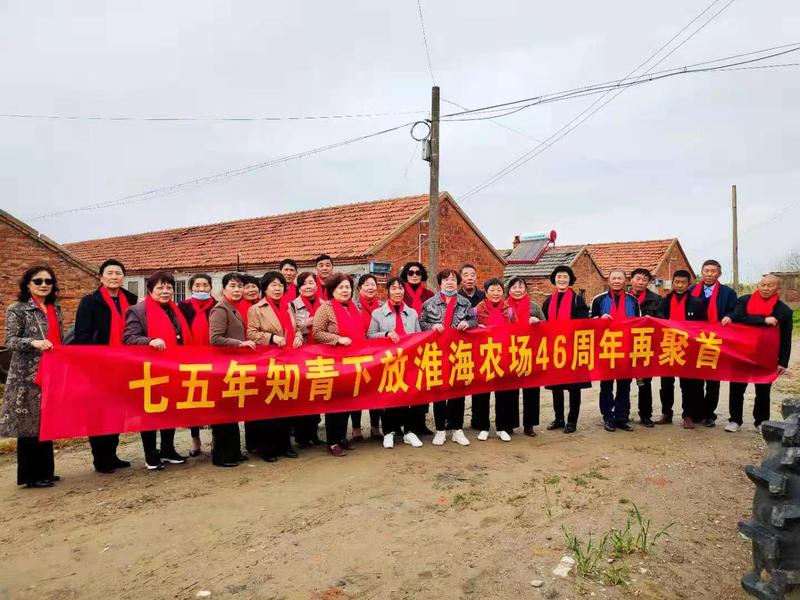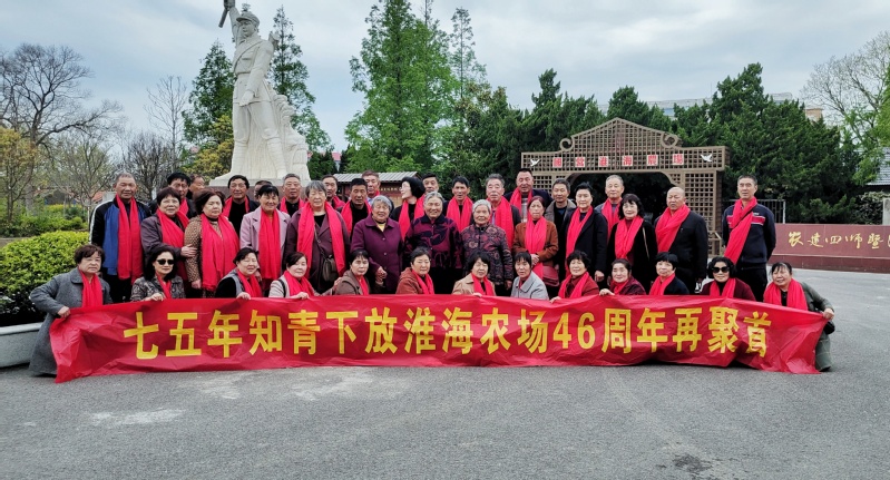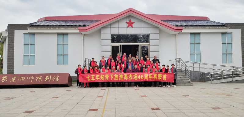 为留下珍贵的记忆,知青们还在农建四师纪念碑、古色古香的国营淮海农场大门、农建四师陈列馆的台阶前和曾经居住过的大队队部,拍摄了写有“七五年知青下放淮海农场46周年再聚首”横幅的集体照,以记住这一次难忘的第二故乡之旅。