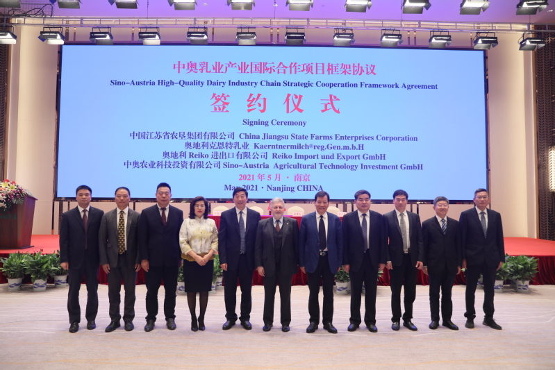 据悉,合作框架协议由江苏农垦集团与奥地利克恩特乳业、Reiko奥地利公司、中奥农业科技投资有限公司等共同签署,旨在发挥各自优势,共同推进中奥乳业合作。未来将在饲料生产、奶牛养殖、乳制品加工、乳制品行业研究等领域共同探索合作,建立高标准乳业产业链和国际乳品行业研究所。