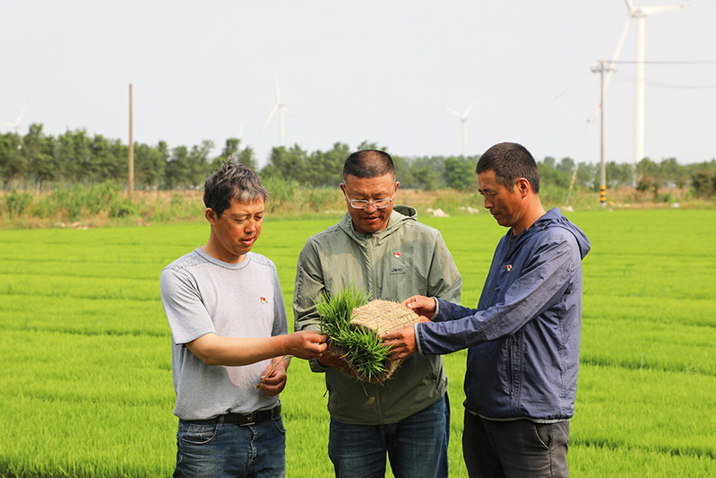 在水田边,管理人员徐静嘱托播种机操作手“速度不要太快,要匀速播散,保证质量。”……徐洪兵、陈宏卫、曹荣兵、徐士忠……这些在一线的党员管理人员,他们在各自的工作岗位上洒下辛勤的汗水、默默奉献,在农业建设的主战场上,贡献党员力量,用丰硕的成果向建党一百周年献礼。